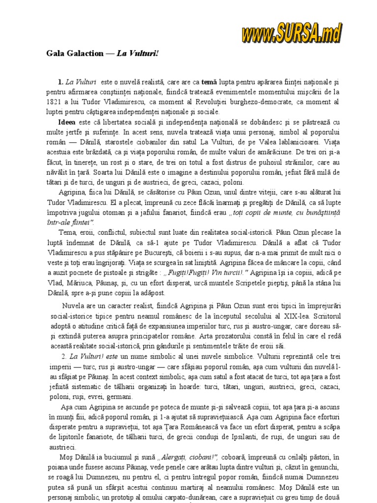 untuk "La Vulturi De Gala Galaction Rezumat"