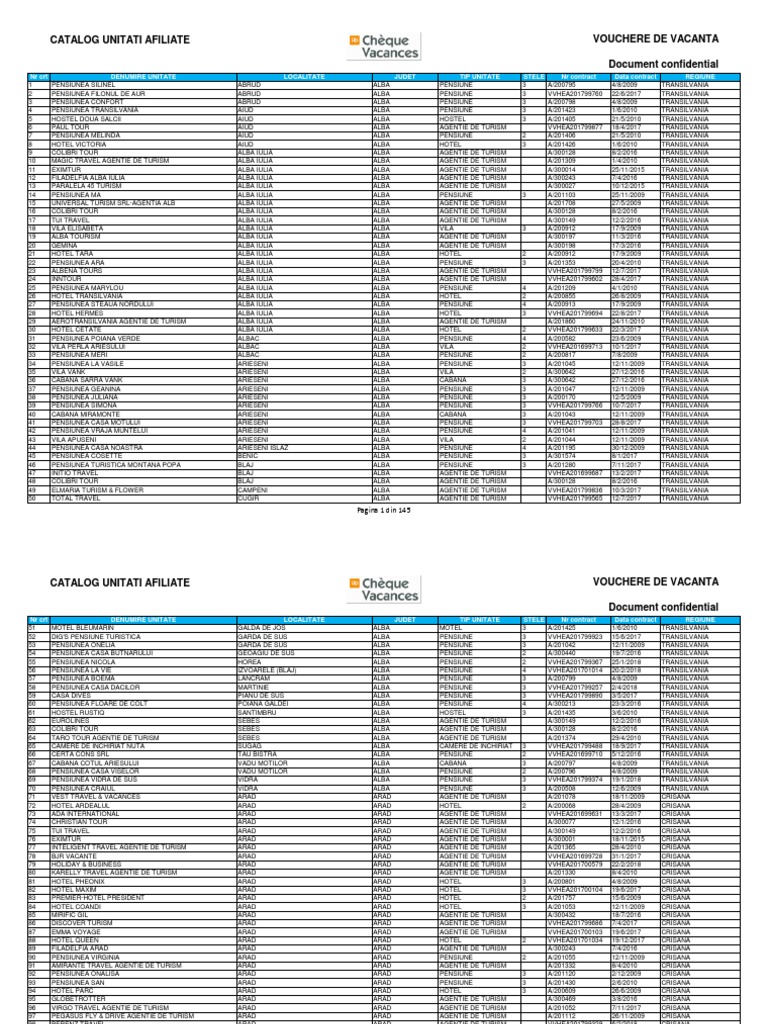Voucherele de vacanta nu sunt transmisibile. Achitarea cu vouchere de vacanta se poate face astfel: Denumire unitate pensiunea silinel pensiunea filonul de aur pensiunea confort paul tour hostel doua.