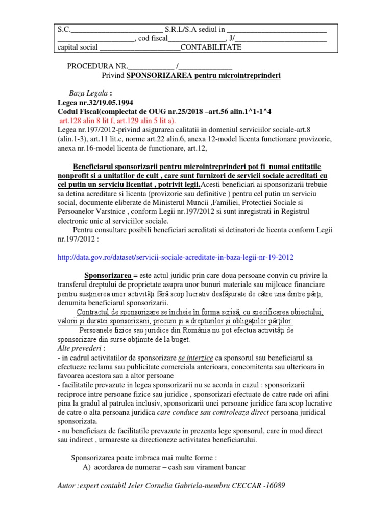 (11) microintreprinderile care efectueaza sponsorizari, potrivit prevederilor legii nr 32/1994 (legea.